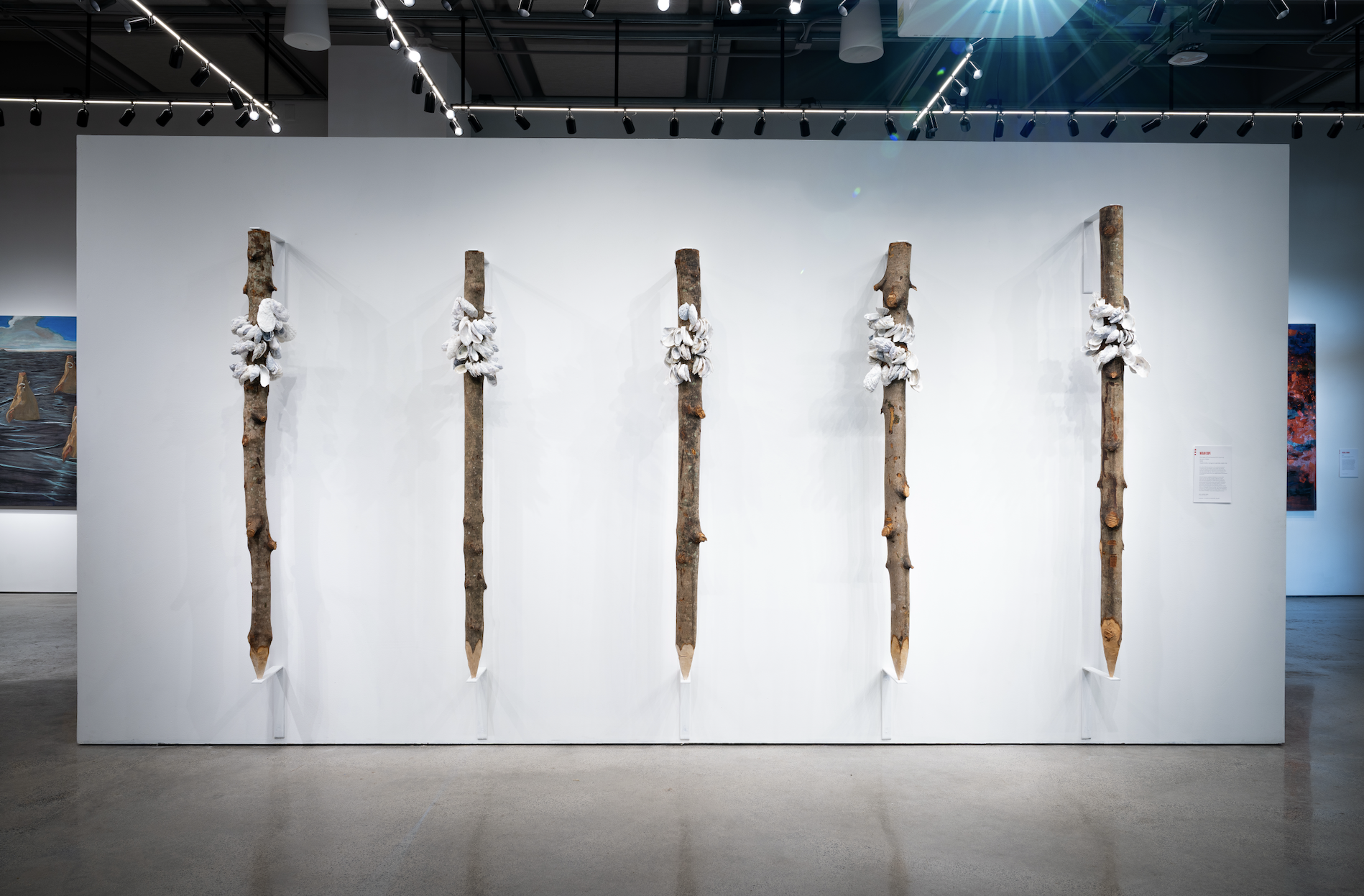 Image credit: Megan Cope, Kinyingarra Guwinyanba (Off Country) / Kaulana ‘Ōlepe, 2025, local timber, local oyster shells, stainless steel wire, dimensions variable. Installation view, Hawai’i Triennial 25: Aloha Nō, Hō'ikeākea Gallery, Leeward Community College, Honolulu. Courtesy of the artist and Milani Gallery, Meanjin/Brisbane. Photo: Duarte Studios.